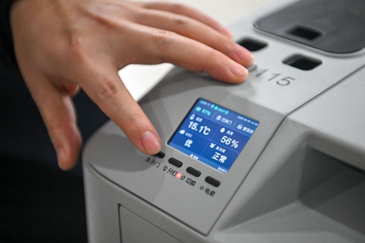 Seorang petugas menyesuaikan suhu dan kelembaban kandang transportasi hewan peliharaan di Kota Chongqing, China, 9 Februari 2026. (Xinhua/Tang Yi)Pewarta: Xinhua