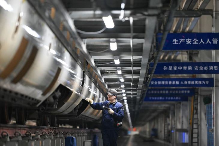 Seorang petugas China Railway Nanning Group Co., Ltd melakukan pemeliharaan di depo kereta cepat di Nanjing, Provinsi Jiangsu, China, 27 Januari 2026. (Xinhua/Xin Yi)