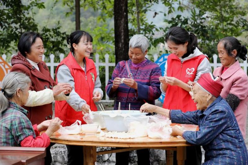 Relawan membuat pangsit bersama dengan orang tua di Desa Gaobei di Kabupaten Shibing, Qiandongnan Miao dan Prefektur Otonomi Dong, Provinsi Guizhou, Cina barat daya, 27 Oktober 2025. Serangkaian kegiatan diadakan di seluruh negeri untuk menandai Festival Chongyang China, yang akan jatuh pada 29 Oktober tahun ini. Juga dikenal sebagai Hari Lansia di China saat ini, ini menyoroti perawatan publik untuk orang tua. ANTARA/Xinhua/Tai ShengzhiPewarta: Xinhua
