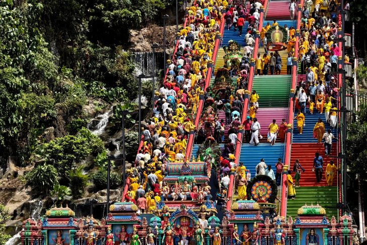 Para umat Hindu Tamil, berbondong-bondong datang ke Gua Batu, yang merupakan situs keagamaan Hindu terkenal di Malaysia, untuk melaksanakan prosesi keagamaan yang sakral.