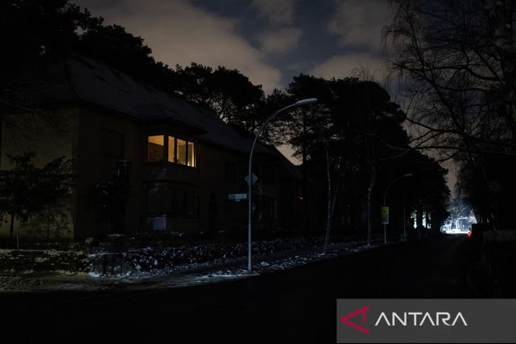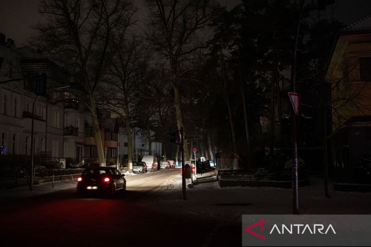 pemandangan jalan di permukiman saat pemadaman listrik di kawasan Nikolassee di Berlin, Jerman, Selasa (6/1/2026). ANTARA/Xinhua/Zhang Haofu/aa.Penerjemah: Xinhua