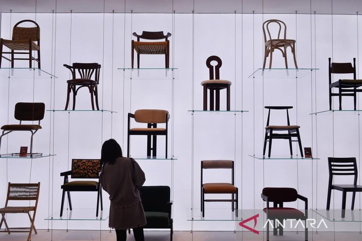 Seorang pengunjung melihat kursi di stan Provinsi Jiangxi saat berlangsung China International Import Expo (CIIE) ke-8 di Shanghai, China, Kamis (6/11/2025). ANTARA/Xinhua/Lu Peng/aa.Pewarta: Xinhua