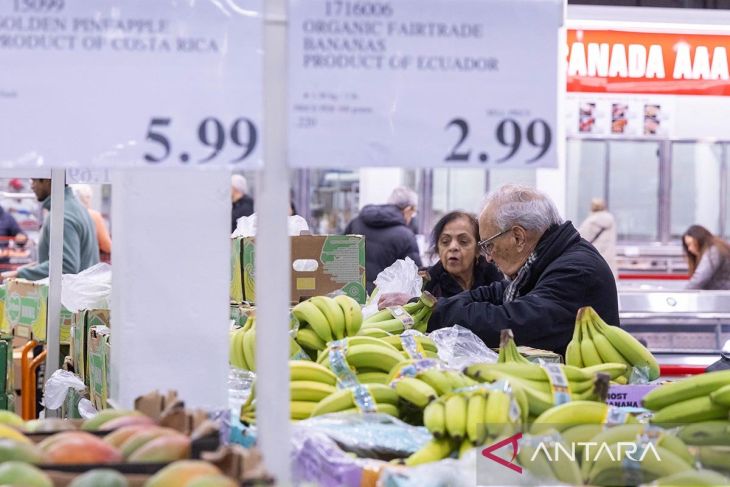 Pelanggan berbelanja buah di toko gudang Costco di Toronto, Kanada, Senin (17/11/2025). ANTARA/Xinhua/Zou Zheng/aa.
