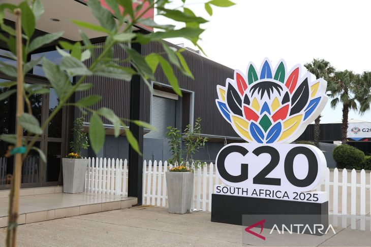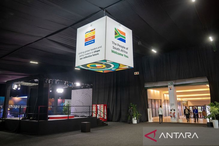 Suasana lokasi KTT G20 ke-20 di Johannesburg, Afrika Selatan, Senin (17/11/2025). Konferensi Tingkat Tinggi (KTT) yang dihadiri sejumlah pemimpin negara dengan pembahasan isu-isu global tersebut akan diselenggarakan pada 22-23 November. ANTARA/Xinhua/Shiraaz Mohamed/aa.