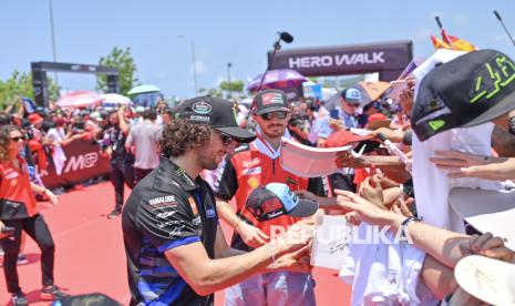 REPUBLIKA.CO.ID, MANDALIKA -- Sejumlah pembalap MotoGP mengikuti sesi MotoGP Hero Walk menjelang race MotoGP Indonesia 2025 di Sirkuit Internasional Pertamina Mandalika, Lombok Tengah, Nusa Tenggara Barat, Ahad (5/10/2025).
